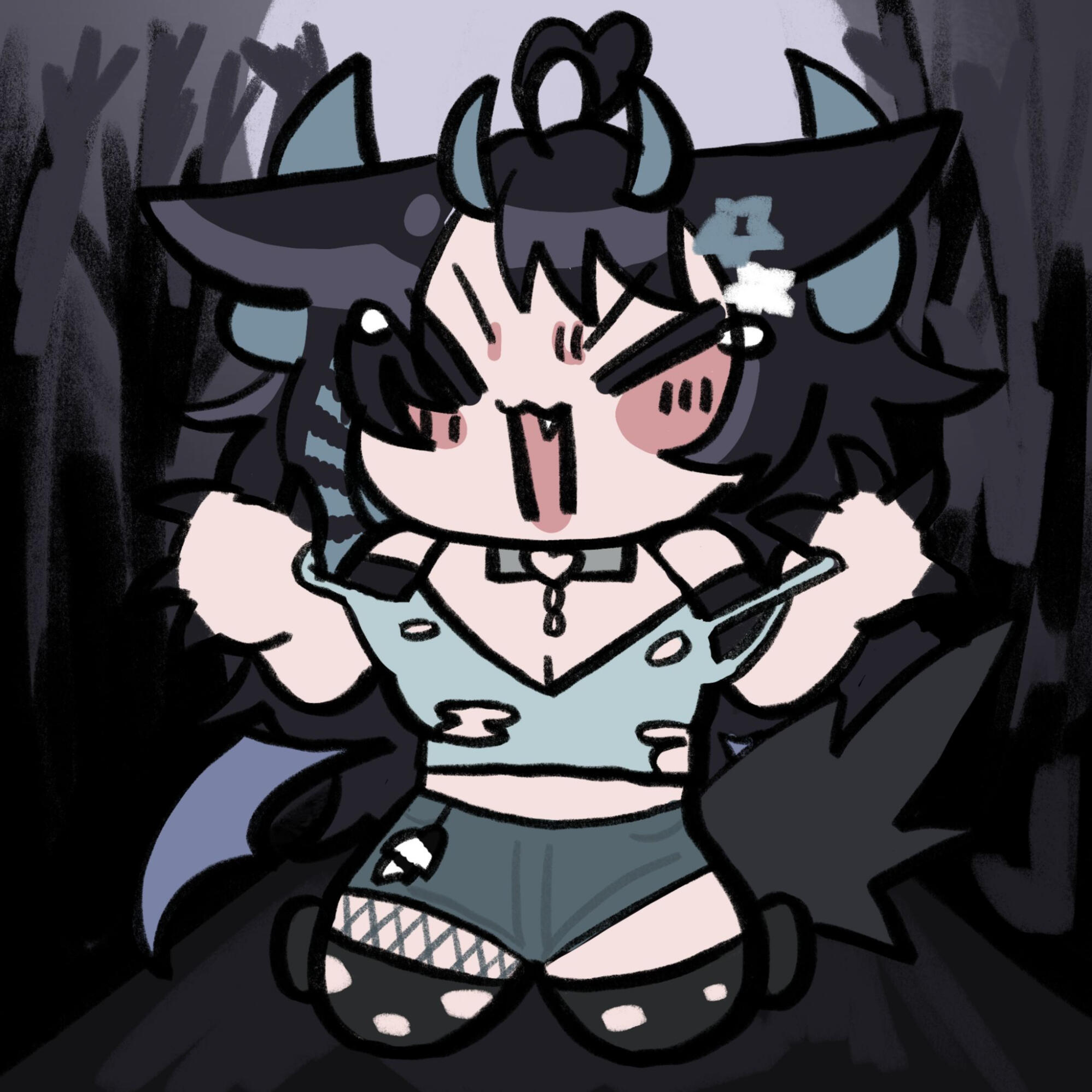 Light blue horns twisted from her skull, blue fire igniting in her hair, trailing from that single glowing stripe. Her fur shimmered with smoke and shadow as she rose above the altar flying.